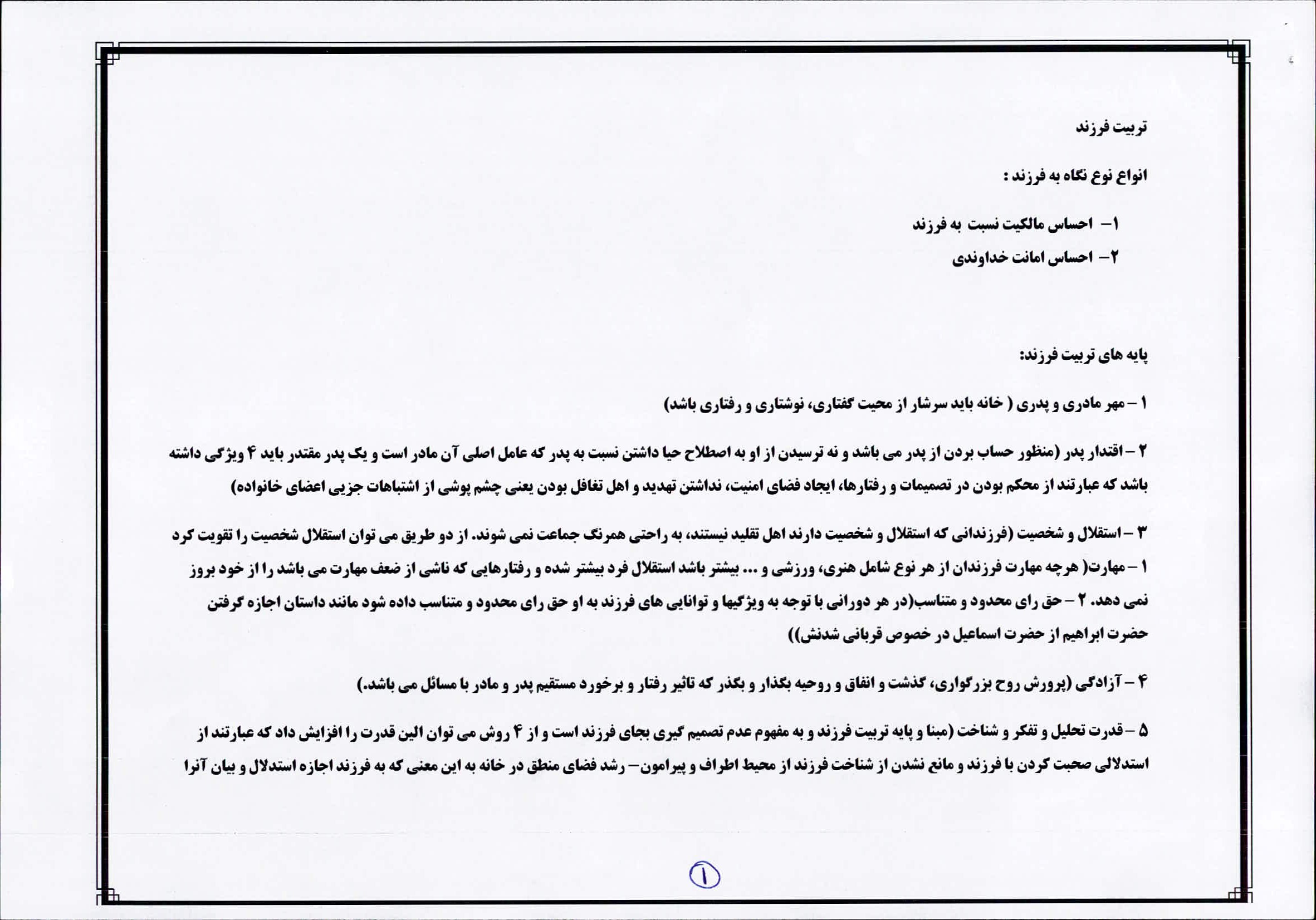 خلاصه سلسله جلسات پایه های تربیت فرزند ارائه می گردد.